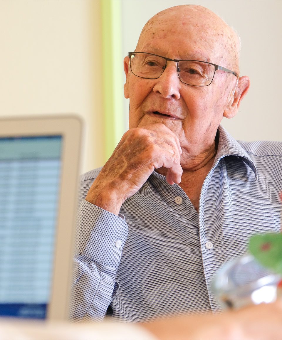Werner Nüssli ist 1924 geboren und wuchs zusammen mit zwei Schwestern in Gossau SG auf. Nach der kaufmännischen Ausbildung arbeitete er mehrere Jahre für die Union Trading Company im Ausland. Nach der Heirat und der Geburt seiner Kinder kehrte er in die Ostschweiz zurück und nahm eine Stelle bei Saurer in Arbon an. Für den Nutzfahrzeug- und Textilmaschinenhersteller reiste er häufig ins Ausland. Mit 50 Jahren kam er nach Luzern, um für die Flugzeugwerke in Emmen tätig zu sein. Heute lebt er im Viva Luzern Rosenberg.